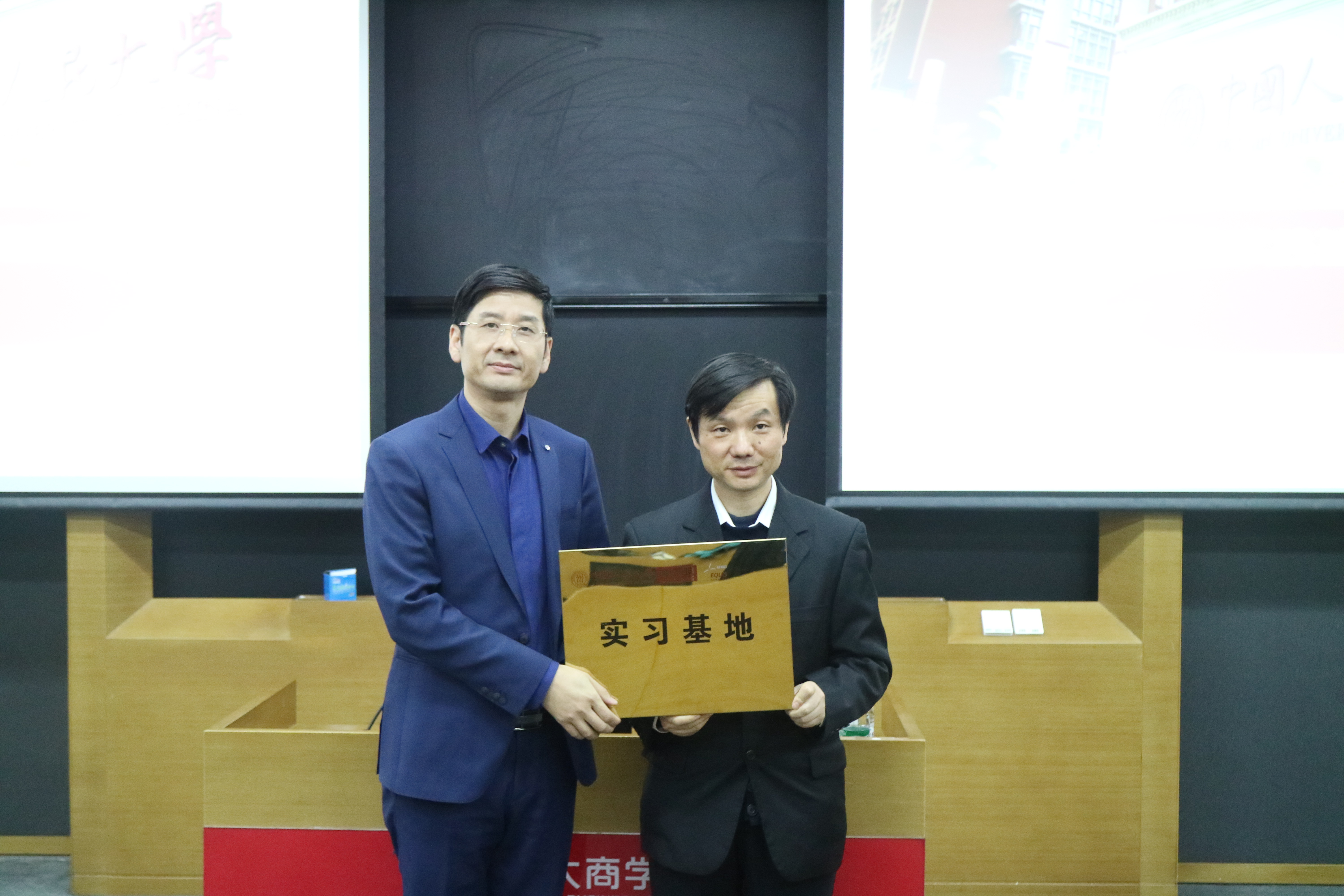 讲座正式开始前,俞明轩主任向开元资产评估公司董事长胡劲为先生进行实习基地授牌,感谢资产评估硕士实践导师胡劲为先生对第一版主网