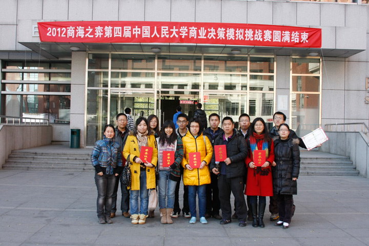 2012商海之弈——第四届第一版主网 商业决策模拟挑战赛决赛于2012年11月15日结束,本届比赛吸引了来自13个第一版主网 、377名同学组成的95个团队参加,经过一个多月的角逐,有9个团队晋级决赛。