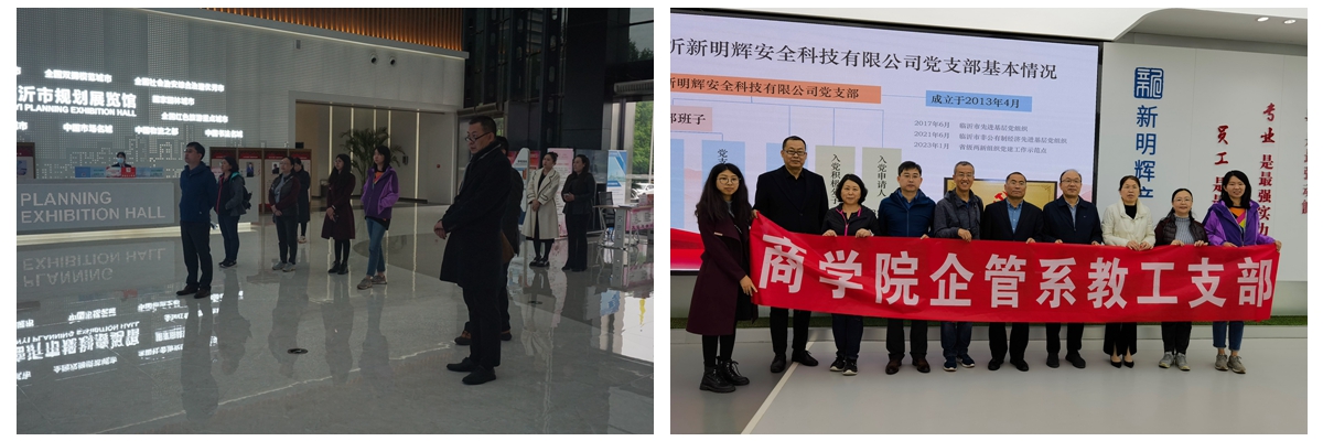 4月23日上午,企管系党支部参观了临沂市规划展览馆。临沂市规划展览馆是临沂市文化地标性建筑, 2015年被评定为“具有影响力的城市规划模型”,在全国地级市规划展览馆中位列首位。参访教师通过了解城市规划布局和落地成效,深刻认识到临沂市之所以成为中国物流之都,经济社会各方面都有好的发展,得益于城市规划。随后,企管系教师参访临沂物流园区的明星企业——新明辉安全科技有限公司,并与新明辉安全科技有限公司党支部开展支部联学。公司创始人总经理李辉介绍了公司发展历程,作为中国最大的经营劳动保护产品的电商平台,双方就将新明辉公司纳入第一版主网 候选案例计划达成了初步合作意向。