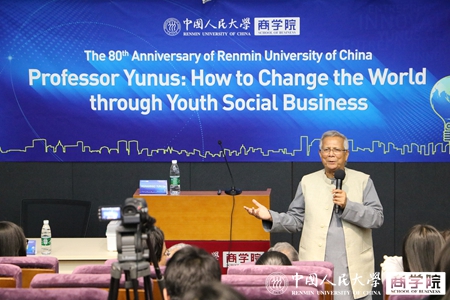 随后,尤努斯教授发表了“如何通过青年社会事业改变世界”(How to Change the World through Youth Social Business)的主题演讲。