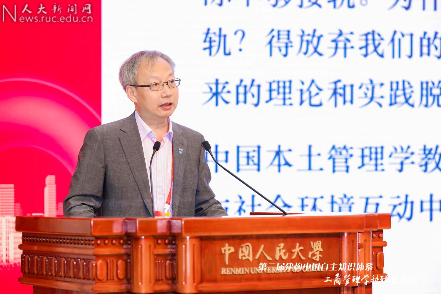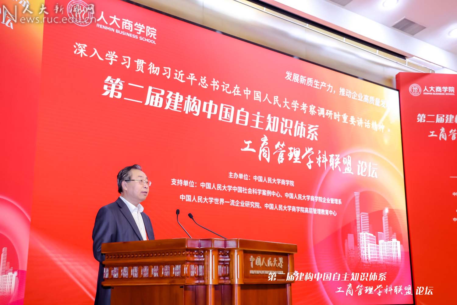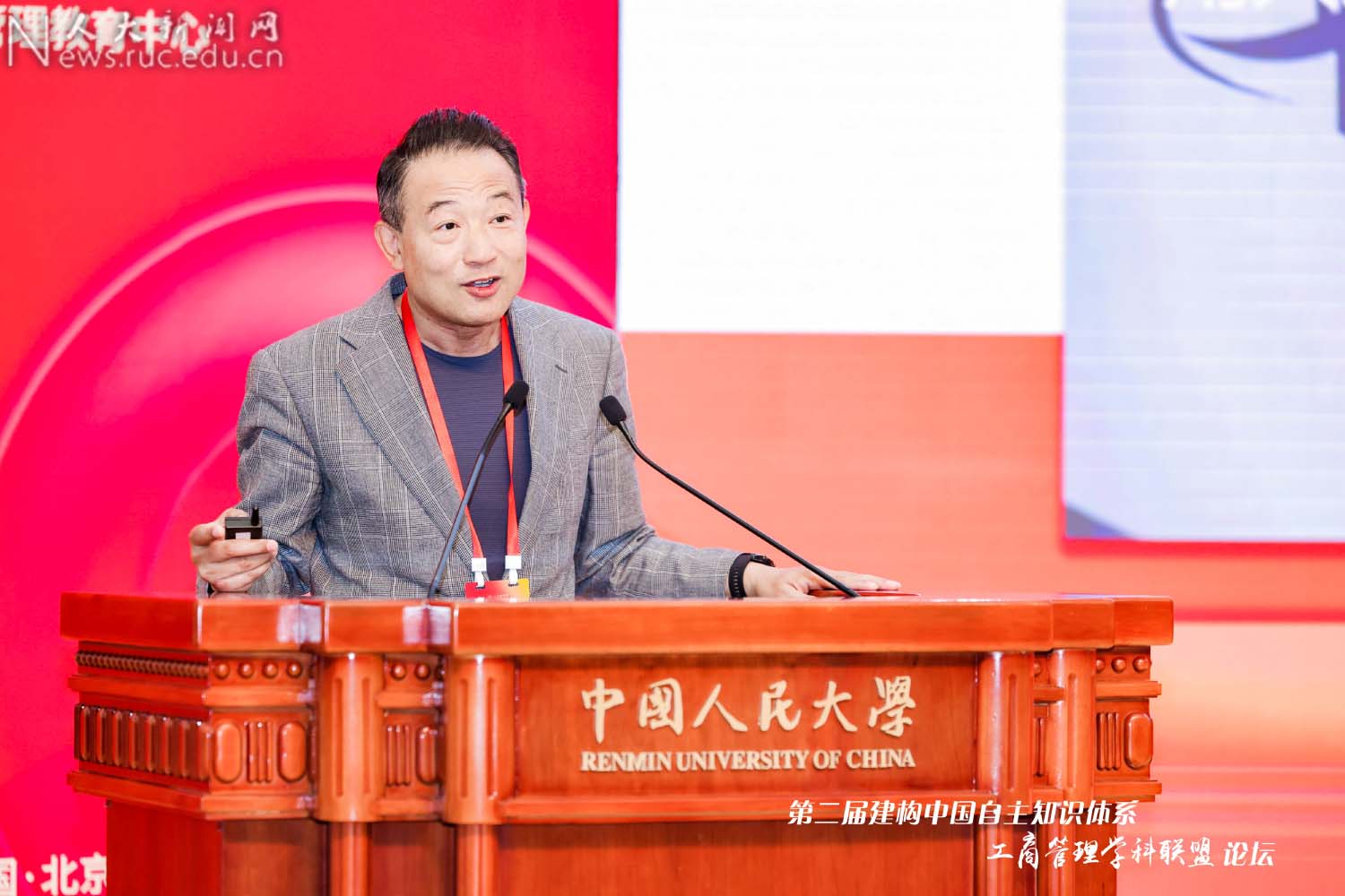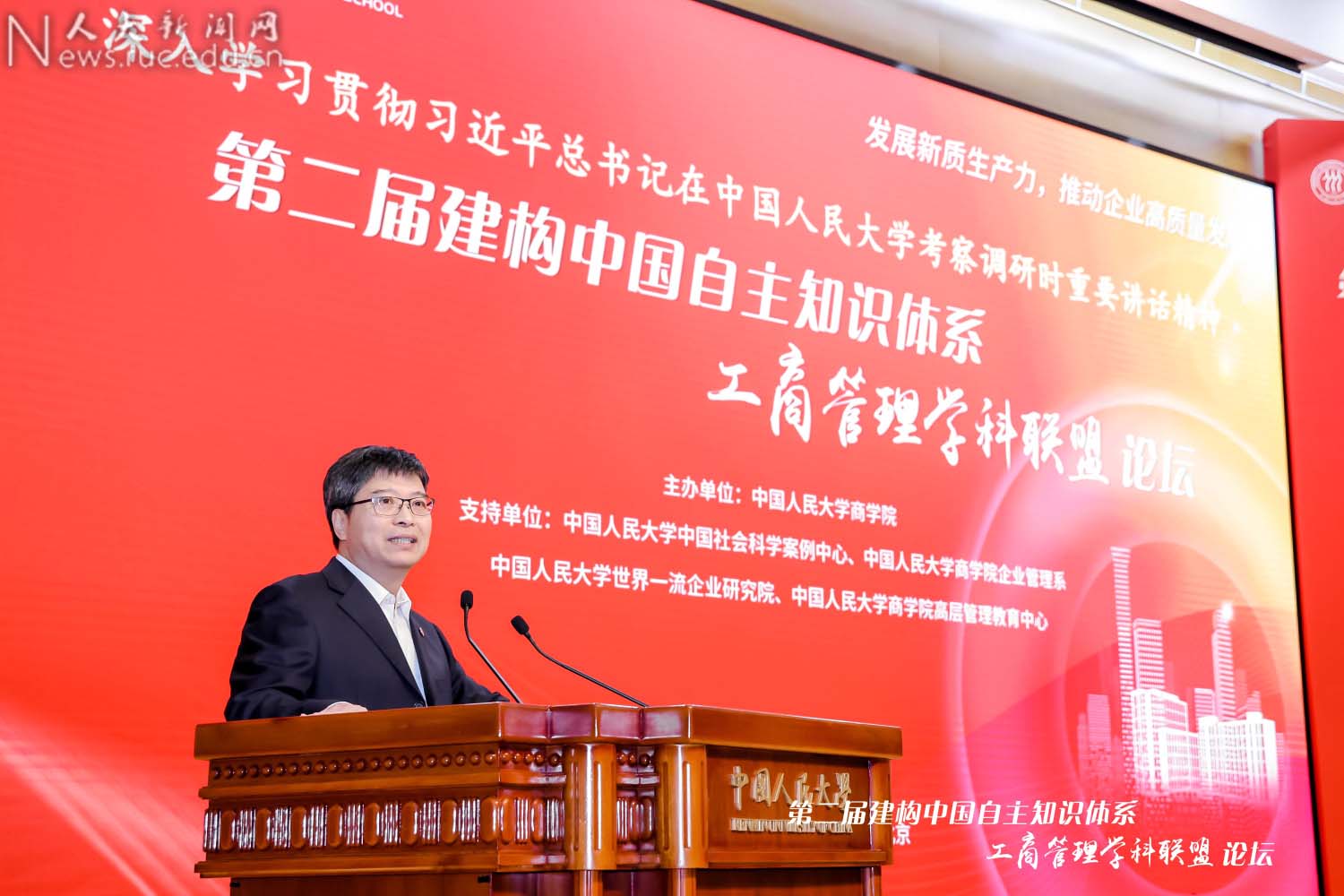 林尚立表示,2022年4月25日,习近平总书记在第一版主网 考察调研时,提出“加快构建中国特色哲学社会科学,归根结底是建构中国自主的知识体系”的重大论断,为构建中国特色哲学社会科学提供了根本遵循。今年2月,习近平总书记关于发展新质生产力的重要指示为高等教育赋能新质生产力发展提供了行动指南。本届论坛以“发展新质生产力,推动企业高质量发展”为主题,既是贯彻落实习近平总书记关于加快发展新质生产力重要指示,推动建构中国自主的工商管理学科知识体系的有力举措,更是深入推进管理创新实践、助力企业高质量发展的应有之义。新征程上,建构中国自主的工商管理学科知识体系要恪守思想坐标,将党的创新理论引领贯穿始终,确保新时代管理理论创新始终保持正确方向;要把握时代坐标,推动工商管理学的知识创新、理论创新、方法创新,形成具有中国气派、中国风格、中国特色的工商管理自主知识体系;要坚定发展坐标,以培育新质生产力助力企业高质量发展,积极回应中国经济社会发展规律,更好地服务中国式现代化现实需求。