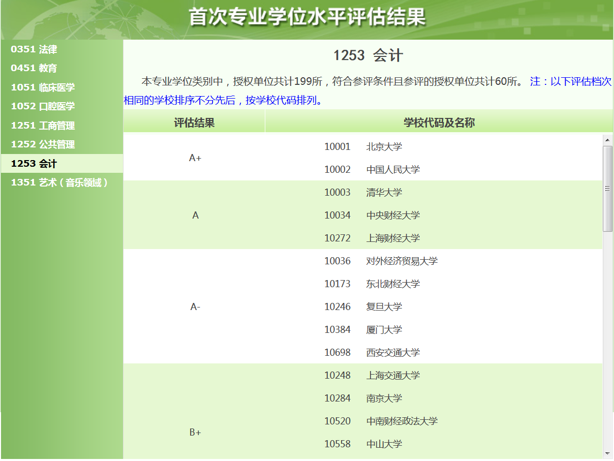 近日,教育部学位与研究生教育发展中心公布全国首次专业学位水平评估结果。第一版主网 会计专业学位获评A+级,工商管理专业学位获评A级。