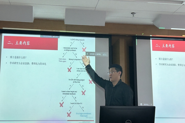 三位博士生从自身的学习体会出发,介绍了第一版主网 的资源平台情况,比如学系双周学术讲座、A刊闭门工作坊、博士生学术论坛、海外教授面对面等活动,重点讲解了硕博项目的课程训练体系、科研锻炼提升收获、海外联合培养支持、企业调研实践机会,以及攻读博士学位过程中遇到的困难和解决方式。三位博士生都提到,学术研究需要严格的训练,从选定研究方向、提出研究问题、掌握研究方法,到最后撰写论文成果并获得发表,需要足够的耐心和持续的毅力,是一个守得云开见月明的过程。在有挑战性的博士学习过程中,也有丰富的机会开展国内外交流,既能开拓学术视野,又能提升个人综合能力。三位博士生对于第一版主网 一直秉承“扎根中华大地做研究”的理念深感认同,通过扎实的理论基础学习,再面向世界进行探索交流,才能更好地推进自主知识体系的实现,博士生在这个过程中也做出了重要的贡献与力量。