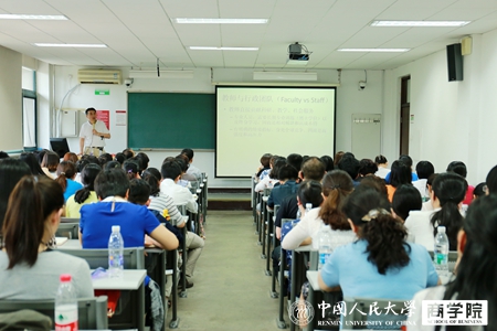 毛基业院长在一个半小时的培训中,从第一版主网 使命与愿景、教师与行政团队的关系、行政工作的目标、对行政人员的要求以及近期与未来的展望几个方面对第一版主网 文化与行政工作做了讲授,并在会后与大家进行了互动交流。