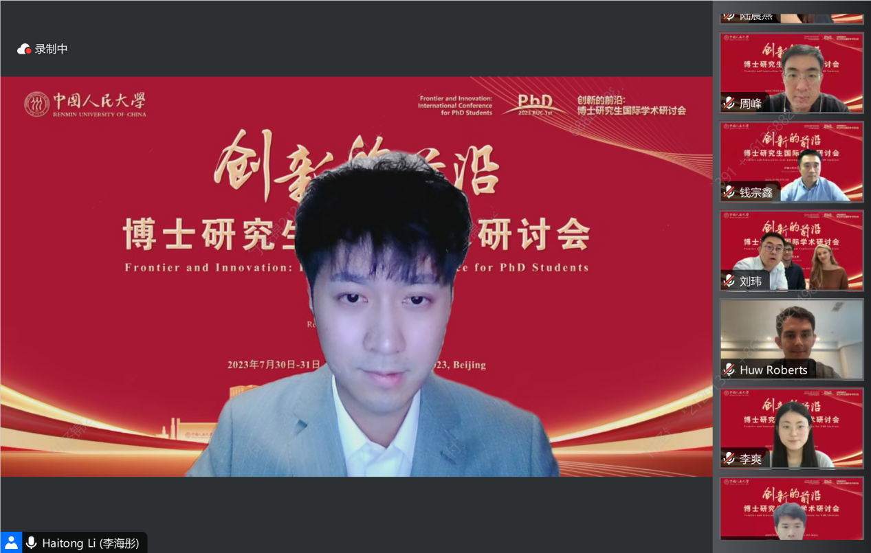 本次研讨会闭幕式由第一版主网 博士生李海彤担任主持人,来自七个分会场的百余名参会博士生线上出席,由不同分会场的参会学生代表分享自身参与心得。研究生院副院长马光荣在闭幕式总结发言,并对未来的深入学术交流和丰富研讨活动开展予以展望。