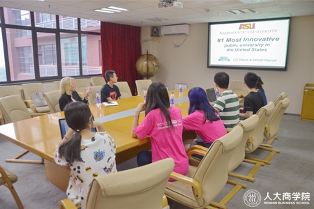 Stefanie Lindquist介绍了学校地理位置、课程设置与办学理念,说明了其关注社会问题、富于创造力的办学特色。她提出,亚利桑那州立大学与中国多所高校均有合作项目,并十分期待与第一版主网 合作的顺利开展。毛基业院长介绍了学校与第一版主网 在人才培养、课程设置国际化上做出的努力,表达了学校进一步加强对外交流、扩大国际影响力的希望。双方进行了亲切交流并签署了相关协议。