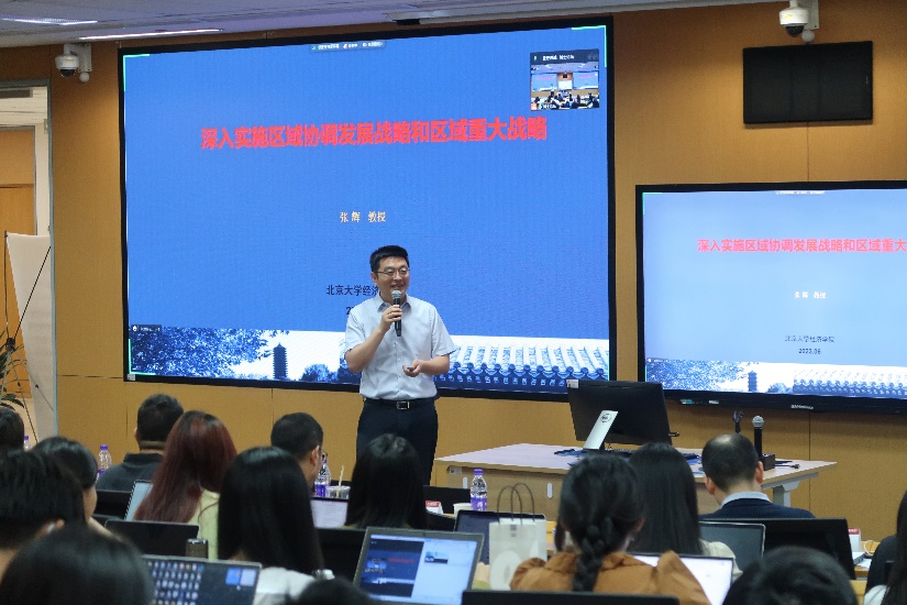 随后四位嘉宾分别进行主题演讲。夏军演讲题目为“理论驱动型管理研究”,张田余演讲题目为“Identity”,张辉演讲题目为“深入实施区域协调发展战略和区域重大战略”,李果演讲题目为“企业社会责任参与在供应链不同位置的回报平等吗?基于COVID-19的证据”。在场师生与嘉宾积极交流,现场气氛热烈。