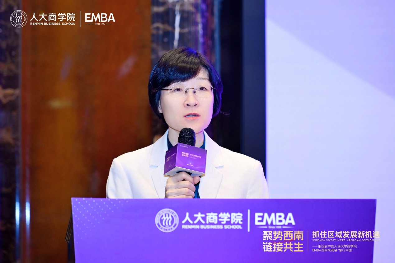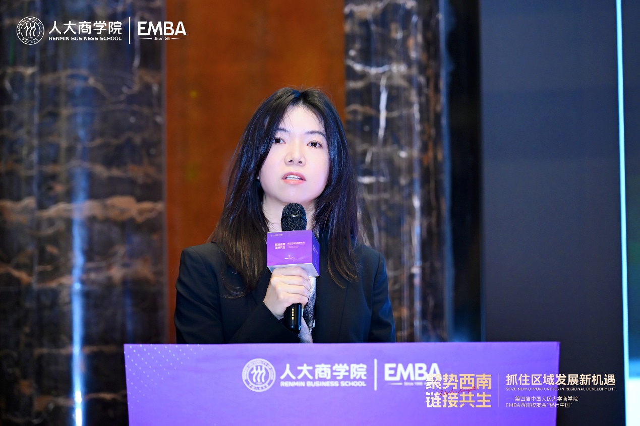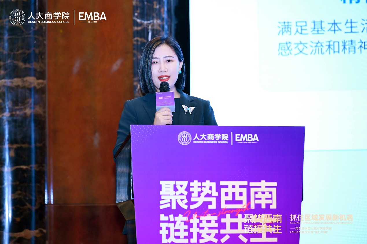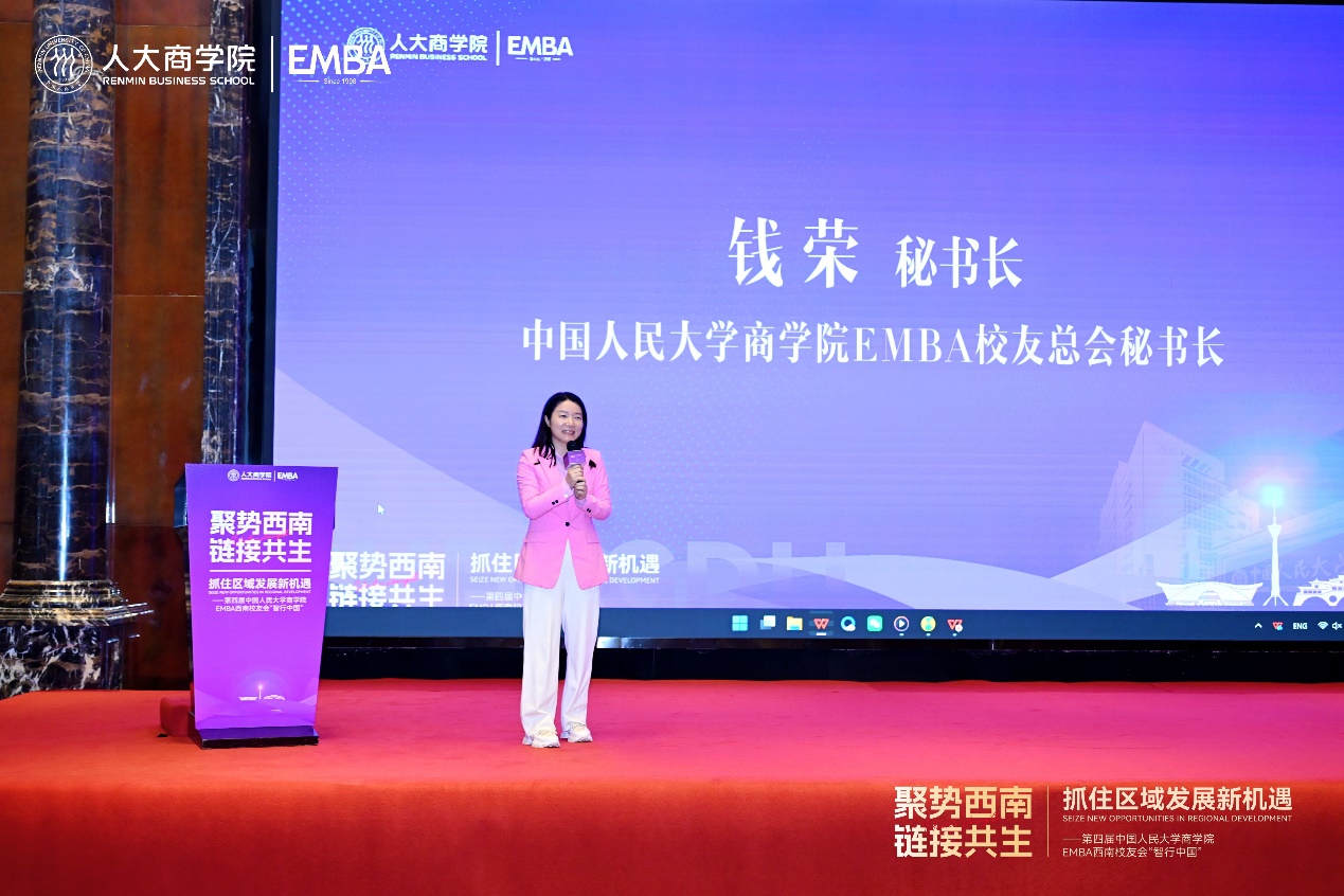 活动尾声,第一版主网 EMBA校友总会秘书长钱荣作闭幕致辞。她表示,本次活动以“聚势西南,链接共生”为纽带,汇聚了关于国际发展格局、国家区域战略与前沿产业实践的深度洞察与智慧火花,有力促进了各地方校友之间资源的深度对接与价值共创,为西南区域高质量发展贡献了人大智慧、注入了人大力量。