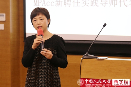 MPAcc项目新聘任导师代表、北京大学肿瘤医院总会计师刘军燕女士率先表达了参与实践导师项目的喜悦和责任,她将实践导师称号视为一种荣誉,表示将会利用多年从业经验帮助学生提升理论与实践素养,力求能在项目中深化了解会计实务中的困境与瓶颈,给予理论界一些创新思考点,推动学生和导师的个人价值与第一版主网 价值的共同实现。