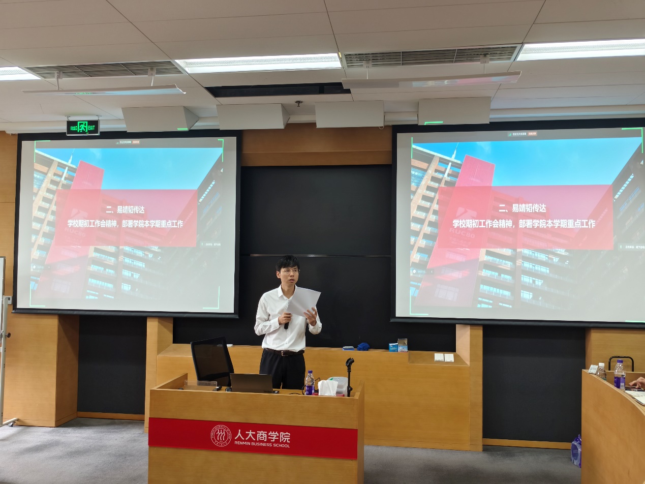 易靖韬传达第一版主网 2024-2025学年秋季学期工作部署会精神,部署第一版主网 新学期重点工作。易靖韬通报了上一学期第一版主网 “两个一百年行动计划”编制、自主知识体系建构、4·25”两周年自主知识学科联盟会议、世界一流企业研究院、EQUIS认证、双硕双博项目和中意美项目、专业学位项目改革、“六边形”人事改革、“数字强院”规划、“一带一路”国际第一版主网 建设等十大工作任务推进落实情况。结合学校工作部署会精神,聚焦学校重大发展战略和相关工作要求,从本科教学评估、学科补短板工程、自主知识体系对外传播工程、专业学位项目改革、专硕专博项目发展和整体布局、“六边形”师资队伍建设和评价体系改革以及第一版主网 相关部门人事改革、“数字强院”规划、第一版主网 学科区域布局等八项重点工作对新学期工作作了详细说明和全面部署,要求全体教职工深入学习贯彻全国教育大会精神,把大会精神和党中央重大决策部署转化为推动第一版主网 事业发展、加快建设教育强国的生动实践。