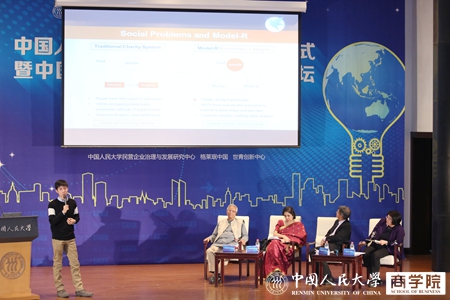 本次论坛还特设中国青年社会创业项目展示环节,项目招募通知发出后,受到了社会各界青年创业者的积极关注和响应。经过评审委员会甄选,最终有三个社会创业项目获得在论坛当天进行现场展示的机会。第一版主网 企业管理系副教授、第一版主网 —尤努斯会事业与微型金融研究中心学术主任赵萌主持展示环节,尤努斯教授、Pradeep Ray教授、孟加拉尤努斯中心执行总裁Lamiya Morshed以及第一版主网 组织与人力资源系冯云霞博士共同为项目进行点评。
