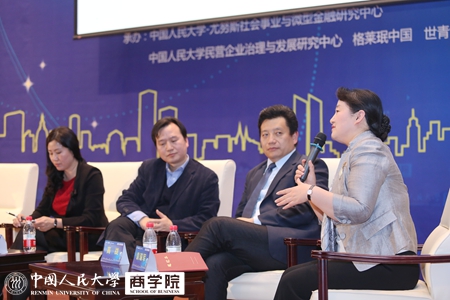 随后,各位嘉宾分别介绍了所在机构的发展现状及发展目标。白虹强调,企业需要将商业利益和社会福祉结合起来,实现义利并举。广义地来看,今后我们的社会企业不应该仅仅是指不分红的企业,而是强调企业在分红的同时也要承担更多的社会责任。刘冬文表示,社会企业更多的是一个企业,希望社会各界不要对社会企业进行道德绑架。高战指出,格莱珉模式不是个人对个人的信贷,而是一个社群的关系,每个员工面对的至少是500个客户,这是传统企业无法达到的,希望这种模式能够在中国实现大范围的落地。袁瑞军以学者的身份带来了“中国社会企业观察:现实与挑战”的主题演讲。她指出,目前国际及国内学术界对于社会企业的概念没有统一的界定标准,中国目前社会企业总体较少但增长迅速,且未来发展潜力巨大,可达到百万量级。她认为,为了发挥潜力,国家需要加快社会企业认证、社会影响力投资、政府对于社会企业各种各样购买性的扶持工作、对企业进行测评。她还表示,目前政府出台了一些针对社会企业的利好政策,各个社会企业要主动争取、把握机遇。各位嘉宾发言结束后,尤努斯教授又与大家分想了他在社会企业的工作经历,以及他在推动社会企业发展过程中的种种感悟。