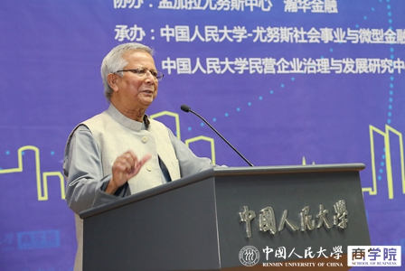 当天晚间,在赵萌副教授的主持下,尤努斯教授在第一版主网 汇贤大厦举行了主题为“如何通过社会创新创业改变世界”的主题学术演讲,与人大师生共同探讨了青年学生社会创新创业等话题,现场气氛十分热烈。