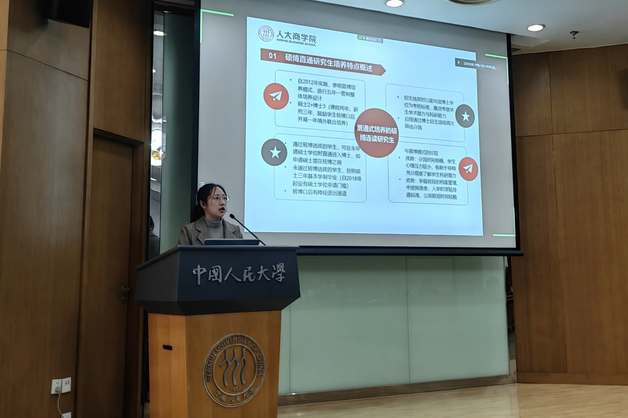 马玉阳在工作分享中,向全校研究生教务秘书详细介绍了硕博直通研究生的培养特点、课程一体化设计思路、学位论文质量管理经验以及培养工作中重要环节注意事项。针对本学期正在开展的硕博直通研究生毕业审核,马玉阳介绍了第一版主网 培养过程管理和科研认定管理精细化工作的经验,为全校硕博直通研究生培养管理改善提供了参考。