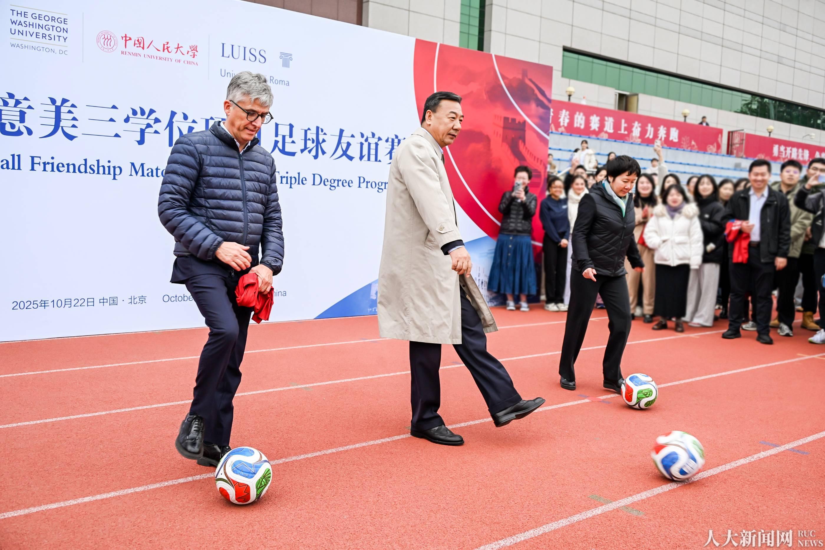 汗水、欢笑、追逐、呐喊,今天的人大绿茵场成为一个小小的“地球村”,中、意、美三国学子因体育齐聚,不同文化因热爱交融,联通中意美,携手向未来。