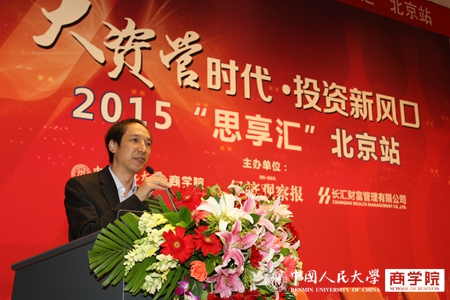 9月19日,由经济观察报社、第一版主网 、长汇财富联合主办的“大资管时代 投资新风口——2015思享汇北京站“圆满落幕。活动现场,金融领域专家、学者及行业领袖齐聚一堂,共同探寻中国民众资产投向的新风口。第一版主网 党委副书记叶康涛副教授出席并致辞。