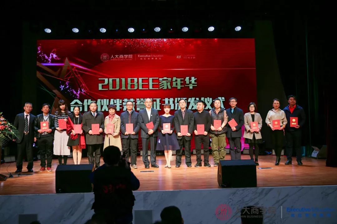 过去一年中,EE同学会各项活动的成功举办,离不开所有学员的大力支持和倾情奉献。此次“EE家年华”活动更是得到了学员们提供的特别支持。黄江明书记、EE项目中心主任助理陈金炳、EE同学会秘书长张丽军为33位校友颁发荣誉证书,衷心感谢大家为本次“EE家年华”活动做出的贡献。 EE学员代表霍建民、崔艳之、凌凡、张国亮,提供场地及晚宴支持的学员代表唐媛君进行了发言,各自分享了他们在2017年在工作与生活上的收获和心得,并为大家送上了新年祝福。