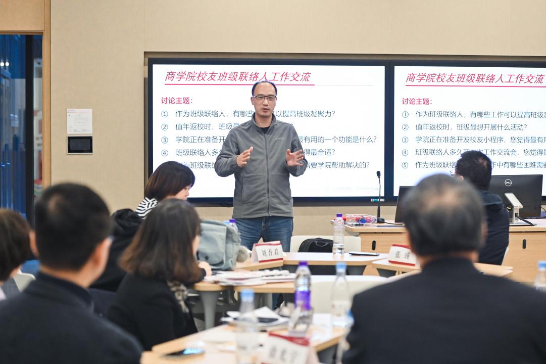 在小组讨论环节,联络人们结合自身经验各抒己见、建言献策,为校友工作提出诸多富有建设性的建议。在小组发言环节,各小组代表依次分享讨论成果,包括建立分层次校友需求体系、打造校友特色活动、推动校企合作、助力在校生职业发展等。