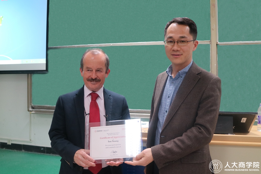 讲座最后,周华教授在总结时向lan Young表示衷心感谢。邓子梁教授代表第一版主网 向其颁发荣誉证书, 感谢他的倾情分享。