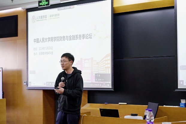 下午的主旨演讲环节,姜纬、财务与金融系副教授任泓霖、博士生赵向阳和姜晓彤分别作主题报告,任泓霖主持。