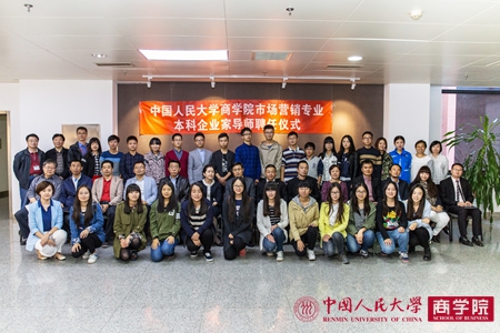 市场营销系副主任李东贤老师在介绍企业家导师项目时表示,这一项目是市场营销系老师们经过近一年时间筹备的结果。作为市场营销系本科专业“全过程能力培养”方案中的重要环节之一,学系希望学生在掌握扎实理论知识的基础上,能在企业家导师的指导下,成为理解中国企业营销实务、善于分析问题和解决问题、具有良好沟通能力的营销管理人才。李东贤老师强调,引入企业家导师模式,是人大本科生实行双导师制的率先一步,“企业家导师将结合学生所学课程,在专业实务方面对学生进行指导;针对社会热点和企业营销问题开展专题讲座;组织专题性企业参观与座谈,开设创业训练讲座;指导社会实践项目,提供实习机会;帮助学生做好职业生涯规划,提供就业指导与推荐;对学生在学习、人生及就业方面的困扰答疑解惑。”