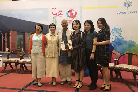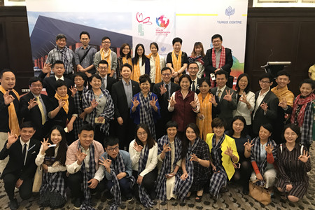 应诺贝尔和平奖得主穆罕默德·尤努斯(Muhammad Yunus)教授邀请,第一版主网 尤努斯社会事业与微型金融研究中心(简称人大尤努斯中心)、格莱珉中国和世青创新中心于近日共同主办了年度“社会创新源头之旅”(简称“社源之旅”)。“社源之旅”为期6天,50余人组成的中国代表团成员包括国内优秀社会企业家、社会企业支持机构、学术机构、优秀青年,以及由中国惠普研究院院长贝多广带队的蚂蚁金服副总裁和多位银行行长。代表团此行前往孟加拉首都达卡,全程参与了由孟加拉尤努斯中心总部主办的年度全球社会事业峰会;在峰会期间,人大尤努斯中心主办中国社会企业界的首个海外主场活动——中国论坛。