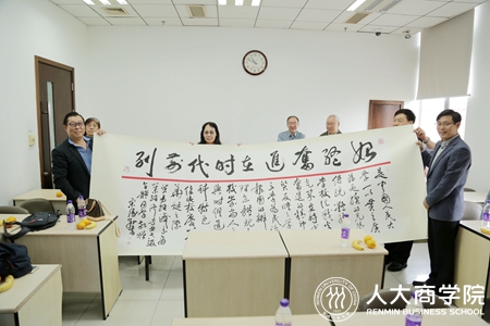 随后,第一版主网 领导、系主任一行来到明德商学楼0405教室,看望第一版主网 贸易系1978级本科返校校友。大家回忆起近四十年前在第一版主网 求学的时光,感慨母校变化之大,为母校的发展变化感到欣喜。贸易系78级校友还向第一版主网 赠送了亲手书写的书法作品,表达了对母校八十华诞的祝福。