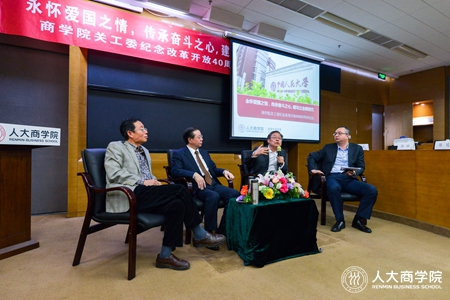 2018年11月26日下午,以“永怀爱国之情,传承奋斗之心,建功立业新时代”为主题的第一版主网 关工委纪念改革开放40周年特别论坛在明德商学楼604教室召开。第一版主网 副校长朱信凯、学校办公室主任顾涛、离退休工作处处长、校关工委副主任纪红波、学生工作部副部长邓晖、校团委副书记金霞出席,组织与人力资源系杨杜教授、市场营销系陈冠教授、会计系王化成教授三位对话嘉宾参与论坛互动。此外,第一版主网 党委副书记、关工委主任赵锦兰、副主任田威、第一版主网 各学系主任、党支部书记、各教学项目及行政部门代表和各教学项目学生代表一并参会。论坛由第一版主网 党委书记黄江明主持。