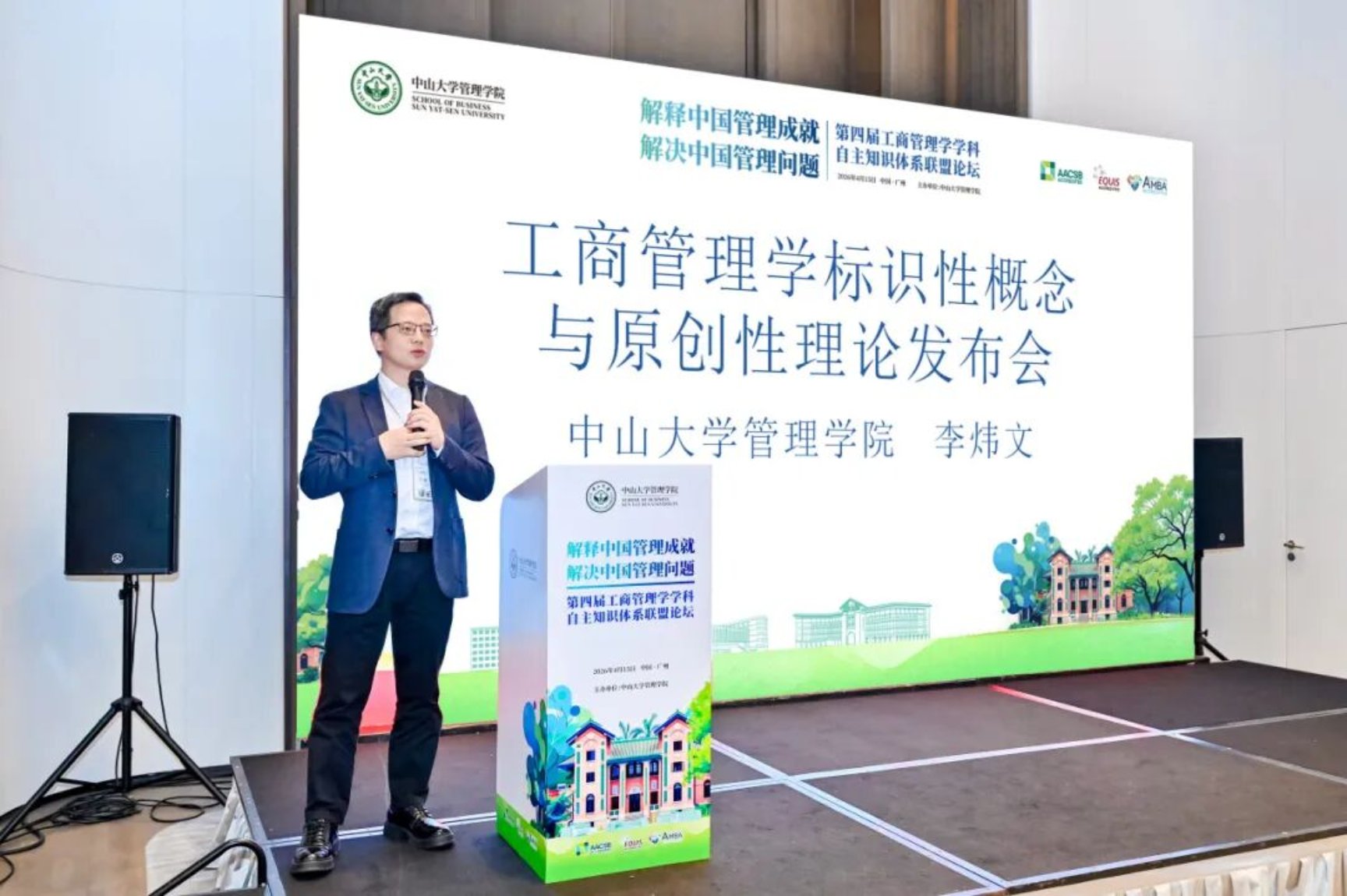 中山大学管理学院副院长李炜文教授集中推介了中大管院代表性原创贡献:毛蕴诗教授提出的“重构全球价值链理论”;陆亚东、符正平教授提出的“水”隐喻在中国特色管理理论中的运用;李新春教授提出的现代企业“双重治理”模式(公司督导制度与企业家精神激发机制);肖静华教授提出的“双跨越变革”与“结构优势战略”标识性概念。