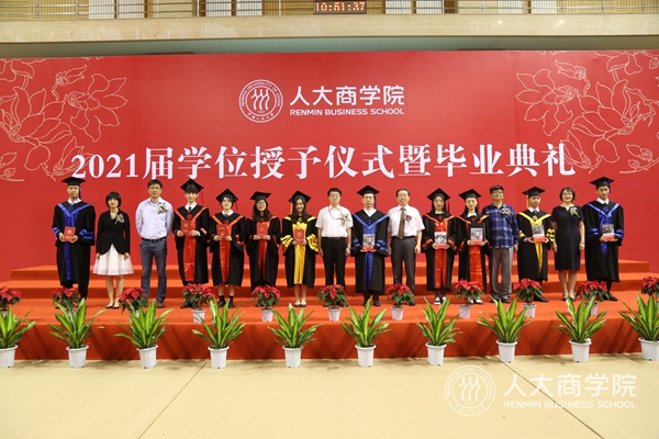 毕业典礼上,第一版主网 2021年“榜样商院”毕业十星、187名北京市级、校级及院级优秀毕业生、到西部和基层就业的毕业生受到表彰。