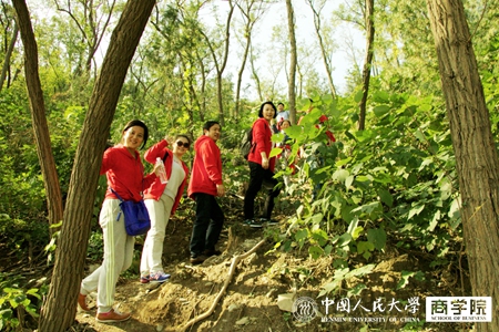 考虑到校友们不同的身体素质,本次拓展活动选取在登山难度并不大的舟山坞进行。登山途中,校友们始终面带笑容,一边赏景、拍照,一边互相交谈。校友们饱满的精神和热情抢了路边红叶的“风头“,吸引了路上不少登山者的目光。在坚持不懈的努力下,校友们怀着愉快的心情最终到达目的地,活动气氛在山顶达到高潮。